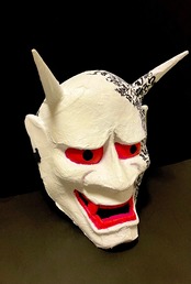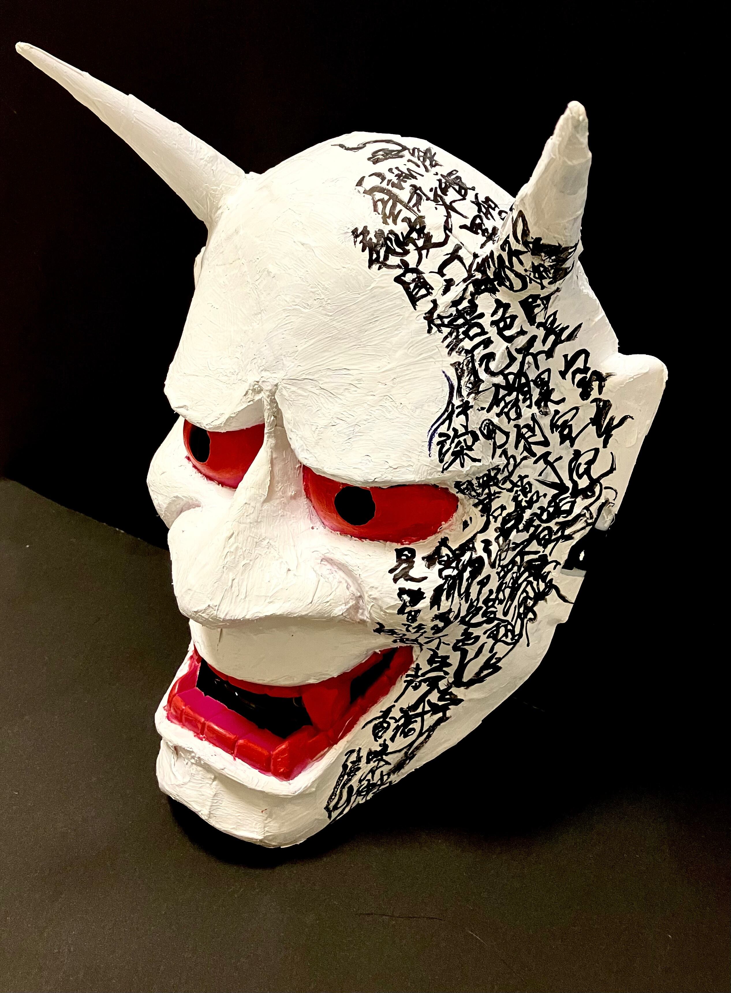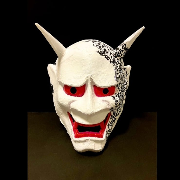 通常のお面に紙などを貼り、